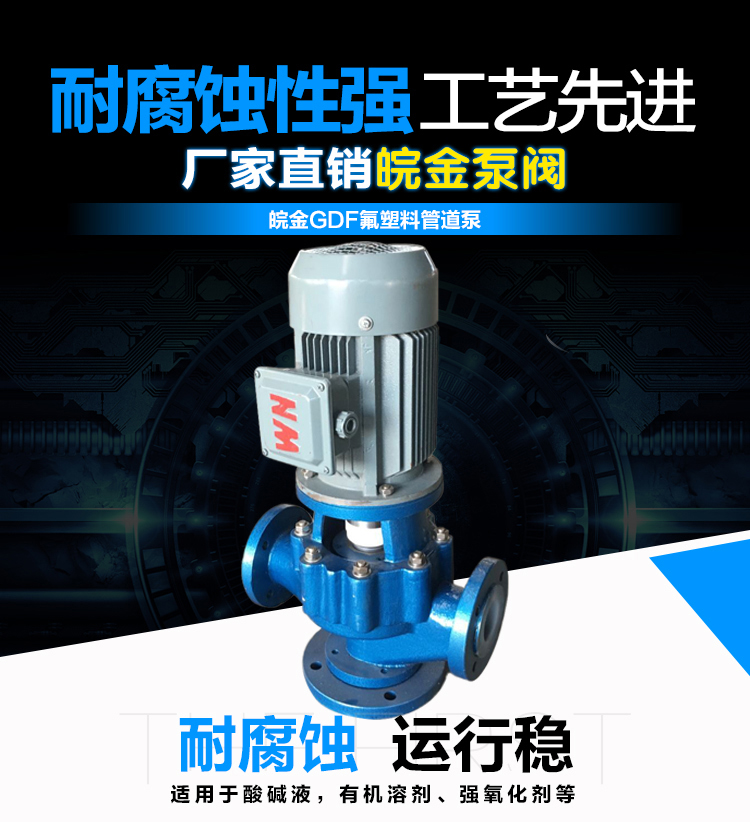 GDF氟塑料管道泵是耐腐蝕化工離心泵中的一種立式結(jié)構(gòu)形式的泵,安裝維護(hù)方便(維護(hù)葉輪、泵體、軸承時(shí)可以不拆除管道)、性能范圍廣、成熟等優(yōu)勢(shì)。耐腐蝕管道泵和耐酸堿管道泵,作為耐腐蝕泵中的氟塑料材質(zhì)泵在耐腐蝕性上的表現(xiàn),氟塑料管道泵以襯氟管道泵得到大多數(shù)工況企業(yè)的青睞。